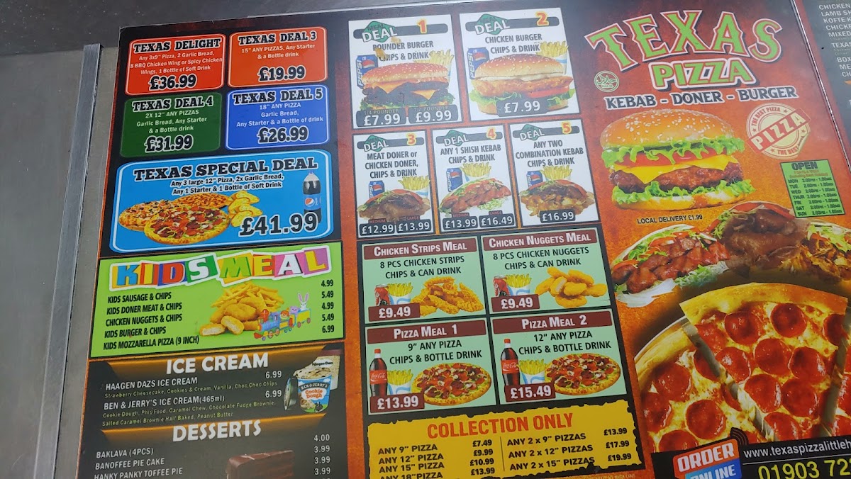 Overall, the menu at Texas Pizza in Littlehampton leaves a satisfying impression, combining classic comfort food with bold, indulgent flavors that cater to a wide range of tastes. The Pizza selection stands out as the heart of the menu, offering generous toppings and well-balanced flavors, while options like the American Hot bring a welcome kick for those who enjoy a bit of spice. Beyond pizzas, smaller items such as the Muffin provide a simple yet pleasant addition, and sides like Peppers add freshness and variety to round out the meal. Taken together, the menu feels thoughtfully composed, delivering both familiarity and enough variety to keep things interesting, making it a reliable choice for a casual and satisfying dining experience.